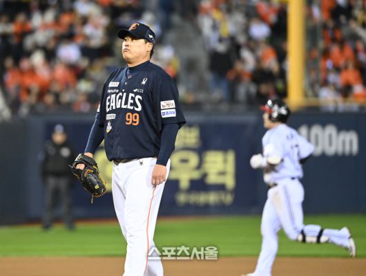 한화 선발투수 류현진이 27일 서울 잠실구장에서 열린 2025 KBO 포스트시즌 한국시리즈 2차전 LG와 경기 3회말 2사1루 상대 박동원에 홈런을 허용한 후 허탈해하고 있다.2025. 10. 27.잠실 | 최승섭기자 thunder@sportsseoul.com [기사제보 news@sportsseoul.com] Copyright ⓒ 스포츠서울&sportsseoul.com