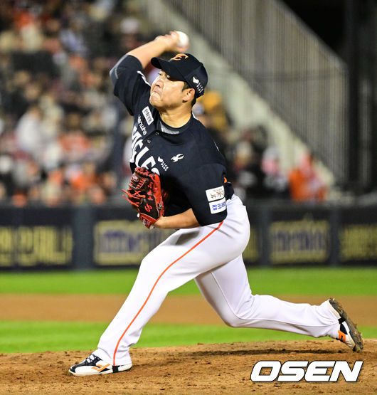 [OSEN=잠실, 이대선 기자] 27일 오후 서울 잠실야구장에서 2025 신한 SOL Bank KBO리그 포스트시즌 한국시리즈 2차전 LG 트윈스와 한화 이글스의 경기가 열렸다. LG는 임찬규, 한화는 류현진을 선발 투수로 내세웠다. 6회말 무사에서 한화 주현상이 역투하고 있다. 2025.10.27 /sunday@osen.co.kr