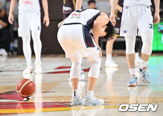 [OSEN=창원, 이석우 기자] 27일 창원 체육관에서 2025-2026 LG전자 프로농구 창원 LG와 부산 KCC의 경기가 열렸다. 공동 2위에 올라 있는 두 팀이, 이번 맞대결에서 공동 1위 도약이냐 공동 3위 추락이냐를 가르는 운명의 한 판 승부를 벌인다. 부산 KCC 허웅이 4쿼터 막판 공격자 파울을 하고 괴로워하고 있다. 2025.10.27 / foto0307@osen.co.kr
