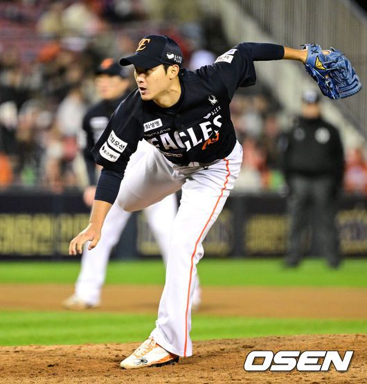 [OSEN=잠실, 이대선 기자] 27일 오후 서울 잠실야구장에서 2025 신한 SOL Bank KBO리그 포스트시즌 한국시리즈 2차전 LG 트윈스와 한화 이글스의 경기가 열렸다. LG는 임찬규, 한화는 류현진을 선발 투수로 내세웠다. 7회말 한화 윤산흠이 역투하고 있다. 2025.10.27 /sunday@osen.co.kr
