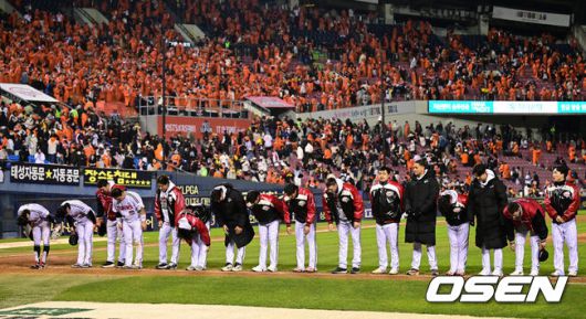 경기 종료 후 LG 선수들이 관중석을 향해 인사를 하고 있다. 2025.10.27 /sunday@osen.co.kr