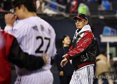 (서울=연합뉴스) 윤동진 기자 = 27일 서울 잠실야구장에서 열린 2025 프로야구 한국시리즈 한화 이글스 대 LG 트윈스 2차전. 13대 5 LG의 승리로 경기가 끝난 후 염경엽 감독이 더그아웃으로 향하고 있다. 2025.10.27