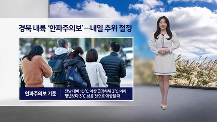 어제 중부 곳곳에 발효됐던 한파특보는 이미 기준을 충족해 해제됐지만 내일은 남부 지방까지 찬 공기의 영향을 받을 것으로 보여 경북 내륙에도 한파주의보가 내려졌습니다.
