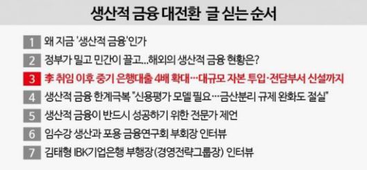 이재명 정부 출범 이후 시중 5대 은행(KB국민·신한·하나·우리·NH농협)의 기업대출(대기업·중소기업·개인사업자 포함)이 약 12조원 늘어난 것으로 나타났다. 4개월도 채 되지 않는 기간에 상반기 대비 약 3배 증가한 셈이다. 이재명 정부가 '생산적 금융'으로의 대전환을 강조하며, 미래산업과 소상공인 등에 필요한 자금이 흘러가도록 지속적으로 독려한 결과다. 이러한 시도가 정치적 구호에 그치지 않고 금융이 저성장·양극화·혁신 정체 등 한국경제의 구조적 문제를 해결하는 성장엔진의 역할을 할 수 있도록 다양한 노력이 진행되고 있다.