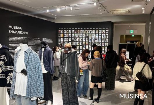 ‘무신사 도쿄 팝업 스토어 2025’ 스냅 아카이브 존을 둘러보는 방문객들. 무신사 제공. |