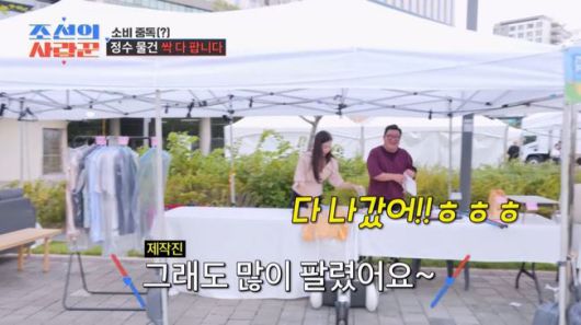플리마켓에서는 똑 소리 나는 '판매왕' 원진서의 활약으로 윤정수의 애착 아이템들이 순식간에 판매됐다. 윤정수가 경매 참여를 위해 자리를 비운 사이, 팔기 싫어 마지막까지 숨겨둔 전동휠까지 손님의 선택을 받았다. 윤정수는 전동휠이 팔려버린 사실에 망연자실하며 "(전동휠을) 혹시 다시 내놓고 싶으시면...TV CHOSUN으로 문의주세요"라고 너스레를 떨어 폭소를 유발했다. 마지막 남은 윤정수의 소파까지 제작진이 구매하면서, 두 사람은 이날 총 54만6000원의 판매 수익을 올렸다. 플리마켓을 정리한 뒤 어딘가 초연(?)해진 윤정수는 원진서에게 축하의 포옹을 전해 훈훈함을 자아냈다.