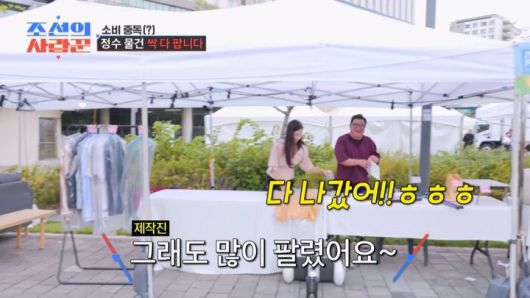 마지막 남은 윤정수의 소파까지 제작진이 구매하면서, 두 사람은 이날 총 54만6000원의 판매 수익을 올렸다. 플리마켓을 정리한 뒤 어딘가 초연해진 윤정수는 원진서에게 축하의 포옹을 전해 훈훈함을 자아냈다.