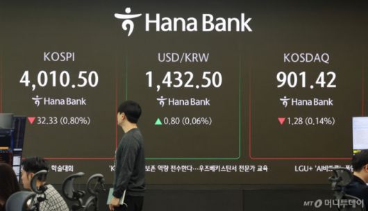 (서울=뉴스1) 황기선 기자 = 28일 오전 서울 중구 하나은행 딜링룸에 코스피 시황이 표시되고 있다. 이날 코스피는 32.36p(0.80%) 내린 4010.47로 시작, 코스닥은 0.12p(0.01%) 오른 902.82로 장을 시작했다. 2025.10.28/뉴스1 Copyright (C) 뉴스1. All rights reserved. 무단 전재 및 재배포, AI학습 이용 금지. /사진=(서울=뉴스1) 황기선 기자 |