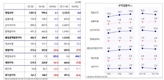 삼성카드의 지난 9월 기준 상품채권잔고는 카드사업 27조 6226억원으로 전년동기 대비 11.8% 증가했다. 카드대출은 7조 526억원으로 같은기간 7.1%, 할부리스사업은 9286억원으로 16.2% 각각 늘었다. 자산건전성 측면에선 3분기 신규연체율(분기평균)은 0.5%로 전분기, 전년동기와 같은 수준이었다. 또 금감원기준 연체율은 1.01%로 전분기(1.07%)대비 0.06%포인트 낮아졌고, 1개월 이상 연체율은 0.93%로 전분기(0.98%)보다 0.05%포인트 낮아졌다.