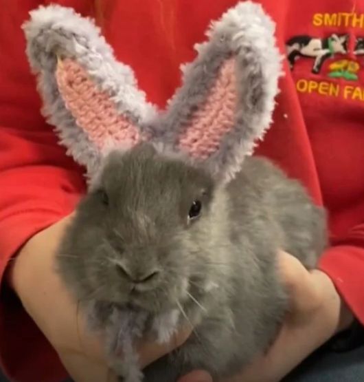 귀 없이 태어난 아기 토끼에게 농부 가족이 직접 뜨개질로 만든 귀를 선물해 훈훈한 감동을 전했다. 사진은 해당 토끼. [사진=틱톡 @smithillsopenfarm]