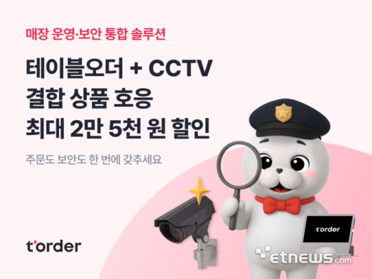 티오더는 지난 8월 매장 보안과 운영 효율을 함께 관리할 수 있도록 테이블오더와 CCTV를 결합한 통합 솔루션을 선보였다. 이 상품은 CCTV 8대 설치 기준 월 5000원 할인에 더해 테이블오더 추가 할인까지 적용돼 최대 월 2만5000원까지 비용 절감이 가능하게 구성했다.