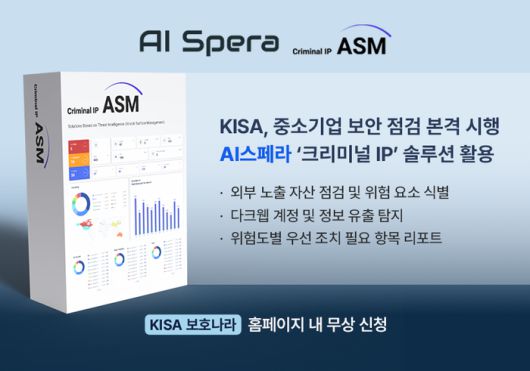 AI스페라가 자사의 공격표면관리(ASM) 솔루션 '크리미널 IP'를 활용해 한국인터넷진흥원(KISA)이 추진하는 중소기업 대상 보안 무료 취약점 점검 사업에 기술을 지원한다.