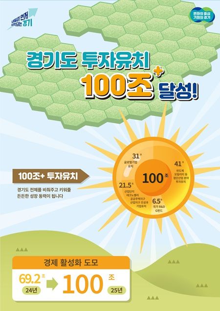이번 성과는 경기도가 글로벌 혁신경제의 중심지로 자리매김하고 있음을 보여주는 지표로, 투자유치 항목은 △글로벌기업 유치(31조 344억 원) △첨단산업 생태계 구축(40조 9995억 원) △우수입지 조성(21조 5345억 원) △기술개발 지원(6조 4879억 원) 등이다.