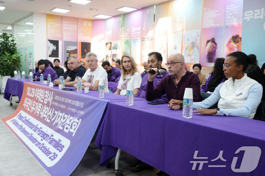 (서울=뉴스1) 이광호 기자 = 28일 오후 서울 종로구 10.29이태원 참사 기억 소통 공간 '별들의집'에서 이태원 참사 외국인 유가족 내외신 기자간담회가 열리고 있다. 2025.10.28/뉴스1skitsch@news1.krCopyright ⓒ 뉴스1. All rights reserved. 무단 전재 및 재배포, AI학습 이용 금지.