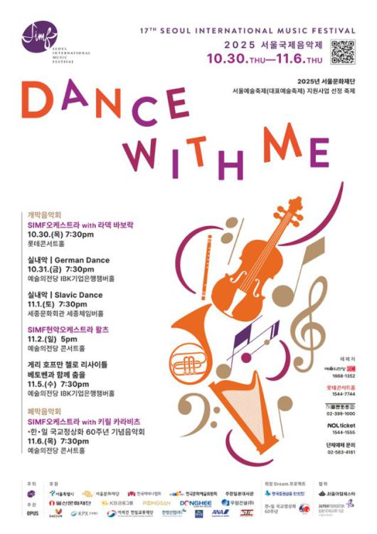 올해로 17회째를 맞은 서울국제음악제(SIMF)가 30일부터 다음 달 6일까지 서울 예술의전당, 롯데콘서트홀, 세종문화회관에서 열린다. 주제는 왈츠, 탱고, 발레 등 서양 음악사를 이끌어 온 춤곡을 통해 클래식 음악의 생동감을 전하는 '댄스 위드 미'다. 첼리스트 게리 호프만, 호르니스트 라덱 바보락·김홍박, 지휘자 키릴 카라비츠 등 국내외 정상급 음악가들이 대거 참여한다.
