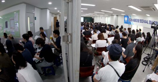8일 서울 성북구 강북종로학원에서 열린 ‘2026 6월 모평 토대 수시, 정시 지원전략 특집 설명회’에서 학부모들이 입시전문가의 설명을 듣고 있다. |