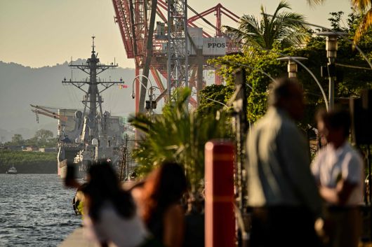 미국 그레이블리 군함이 27일(현지시간) 트리니다드토바고 스페인 항구에 정박 중이다. AFP연합뉴스 |