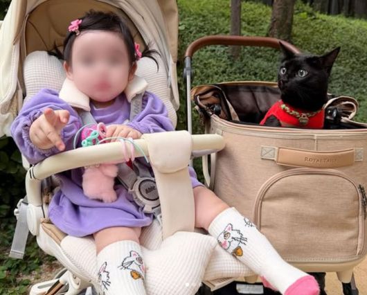 재이 양은 유모차에서 연보라색 옷을 입고 귀여운 매력을 뽐냈다. 풍성한 머리숱, 길쭉길쭉한 팔다리가 이목을 끌었다.
