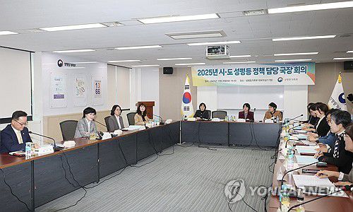 (서울=연합뉴스) 원민경 성평등가족부 장관과 정구창 차관이 28일 서울 종로구 정부서울청사에서 열린 시·도 성평등정책업무 담당국장 회의에서 지자체 성평등 정책 개선 계획 등에 대해 논의하고 있다. 2025.10.28 [성평등가족부 제공. 재판매 및 DB 금지]