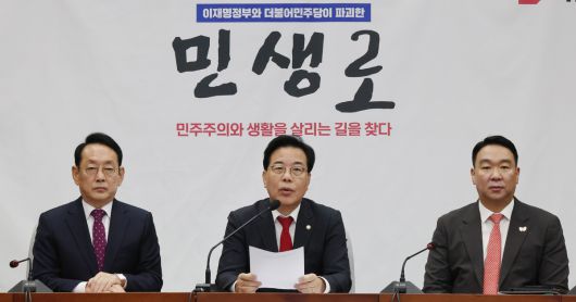 野 “경제 참사 덮기용” 국민의힘 송언석 원내대표가 28일 서울 여의도 국회에서 열린 국정감사대책회의에서 더불어민주당에서 제안한 ‘무정쟁 주간’에 대해 “이재명 정권에서 저지른 경제 참사, 부동산 참사를 덮기 위한 침묵 강요”라고 비판하고 있다. 허정호 선임기자 |
