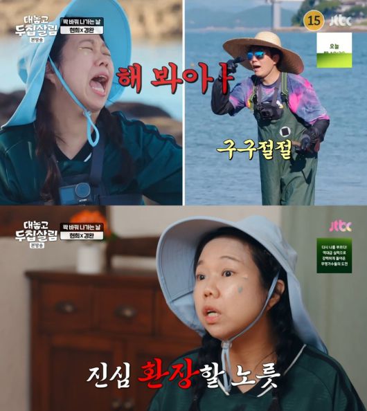 그러나 훈훈한 분위기는 오래가지 못했다. 아무것도 잡지 못해 불안해하던 도경완이 옷을 갈아입자, 홍현희는 물에 들어가라고 지시했다. 그러나 도경완은 아무것도 보이지 않는다며 곧장 물에서 나와 답답함을 자아냈다.