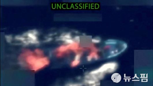 미 국방장관 피트 헤그세스 미 국방장관이 게시한 영상은 동태평양 해역에서 미군이 선박 4척을 공습한 장면 중 하나를 보여준다다. 이 이미지는 날짜가 명시되지 않은 소셜미디어 영상의 정지 화면으로, 2025년 10월 28일 공개됐다. (출처: 피트 헤그세스 X 플랫폼)[사진=로이터 뉴스핌] |