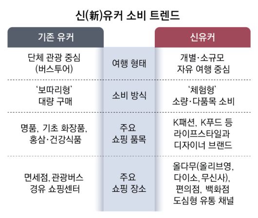 중국인의 쇼핑 트렌드가 바뀐 것이 이 같은 변화를 이끌었다는 분석이 나온다. 코로나 이후 중국 내 중산층의 소비력이 위축되면서 젊은 세대를 중심으로 ‘경험 중심 소비’와 ‘가성비 소비’가 뚜렷해진 것이 ‘신유커’ 트렌드로 이어졌다는 분석이다. 이종우 아주대 경영학과 교수는 “코로나 이전 유커들은 한국 면세점에서 명품을 쇼핑하는 것이 자연스러운 소비 패턴이었지만 최근 중국의 내수 부진으로 가성비 제품과 체험형 소비를 선호하는 흐름으로 바뀌었다”고 설명했다.