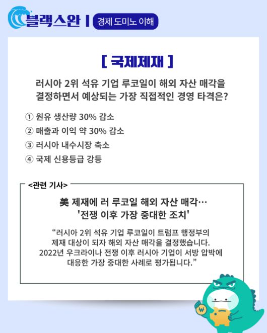 ▶기사 바로가기: 美 제재에 러 루코일 해외 자산 매각···“전쟁 이후 가장 중대한 조치”