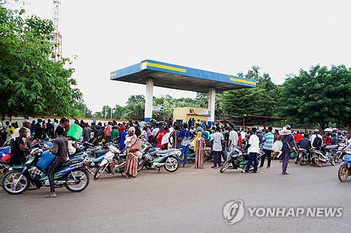 연료를 얻기 위해 주유소 앞에 길게 줄을 선 말리 시민들의 모습 |