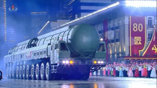 [서울=뉴시스] 지난 10일 평양 김일성광장에서 노동당 창건 80주년 경축 열병식이 성대히 거행됐다고 조선중앙TV가 11일 보도했다. 사진은 신형 대륙간탄도미사일(ICBM) '화성-20형' 모습. (사진=조선중앙TV 캡처) 2025.10.11. photo@newsis.com *재판매 및 DB 금지 |