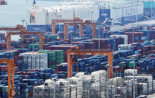 경기도 평택항에 컨테이너가 쌓여 있다. |