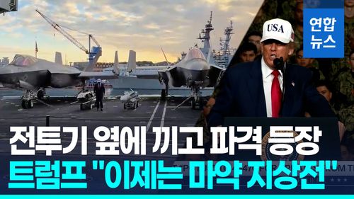 트럼프 대통령은 28일 주일미군을 대상으로 한 연설에서 "우리가 바다에서 마약 테러리스트들을 이기고 있다"고 밝혔습니다.