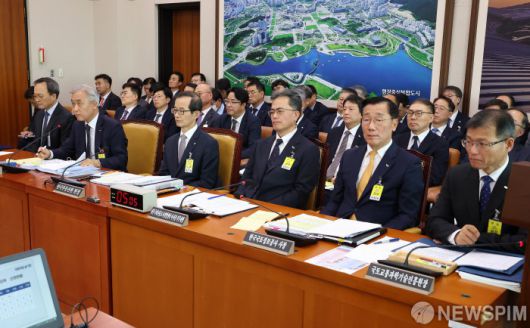 국토위 종감이 정쟁으로 번지자 맹성규 국토위원장은 "법사위를 닮아 가면 큰일 난다"며 "국정감사로 다시 돌아가도록 하겠다"고 사태를 진화했다. 여야 의원들의 의사진행발언과 자료요구로 김윤덕 국토교통부 장관의 업무보고는 국감이 시작된 지 40분이 지나서야 진행됐다.