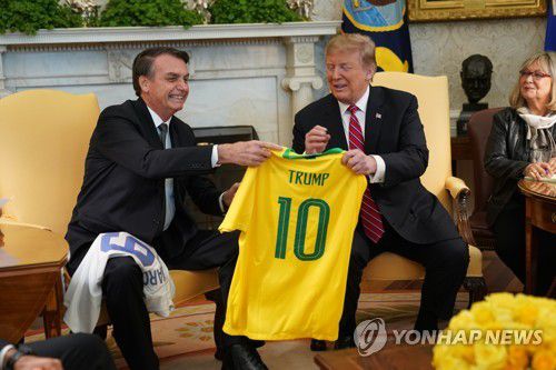 자이르 보우소나루 전 브라질 대통령과 도널드 트럼프 미국 대통령 [EPA 연합뉴스 자료사진. 재판매 및 DB 금지] |
