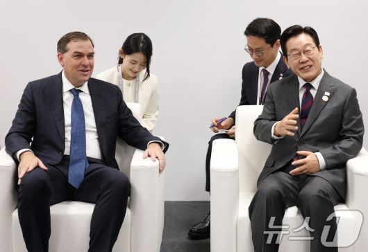 (경주=뉴스1) 한재준 김지현 기자 = 이재명 대통령은 29일 경주 아시아태평양경제협력체(APEC) CEO 서밋을 계기로 방한한 맷 가먼 아마존웹서비스(AWS) 최고경영자(CEO) 등 글로벌 기업인들과 만나 한국 투자 방안을 논의했다.