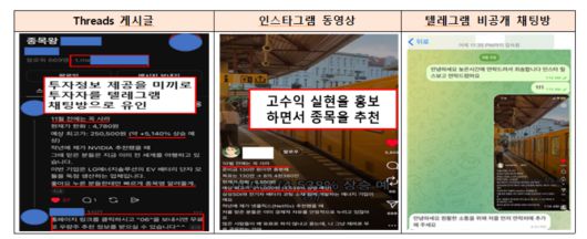 이 같은 수법은 최근 해외주식 투자 열기를 노린 전형적인 불법 리딩 사례다. 금감원에 따르면 불법 리딩 조직들은 스레드(Threads), 인스타그램, 유튜브 등 SNS에서 ‘고수익 전략’ 콘텐츠를 게시하고 투자자에게 다이렉트 메시지(DM)를 보내 텔레그램 비공개 채팅방으로 유인한다. 이후 기관 매수 포착, 내부 정보 확보 등의 문구를 내세워 특정 종목 매수를 권유하고 1~4차례 실전 매매를 통해 소액 수익을 체험하게 한다. 또 이들은 허위 수익 인증 캡처와 가짜 계좌 화면을 공유해 신뢰를 조작했다. 투자자의 보유 주식을 확인한다는 이유로 매매 내역 캡처 제출을 요구하며 심리를 통제하는 식이다.