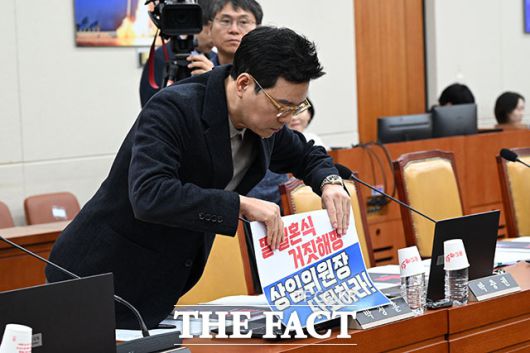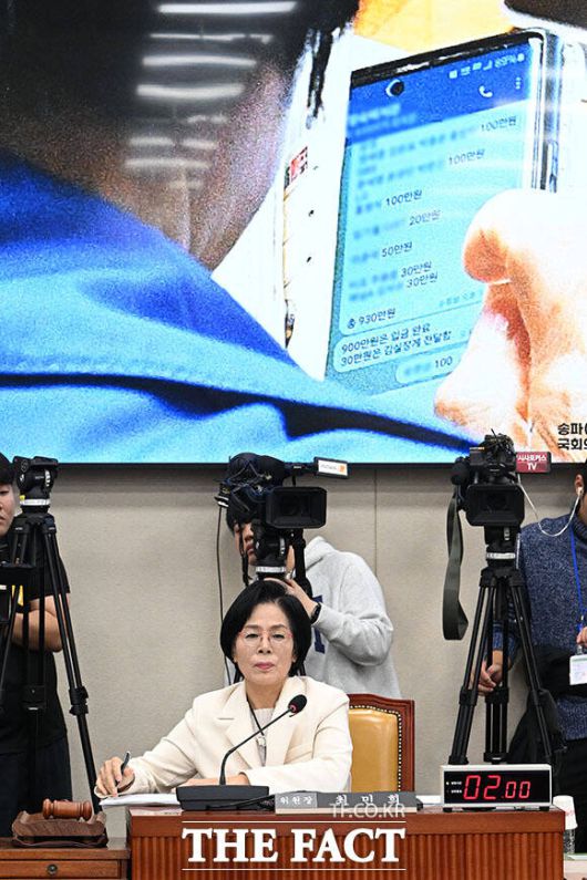 최 위원장은 "국민의힘 의원들이 문제제기를 했지만 오늘은 국감이기 때문에 국감을 진행하겠다"며 "국감이 끝나면 모든 문제제기에 대해 사실만 확인해 SNS에 올리겠다. 이 자리에서 얘기하면 이것이 논란이 돼 국감을 제대로 진행하지 못할 것 같아서"라고 입장을 밝혔다.