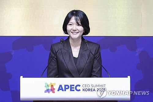 (경주=연합뉴스) 한종찬 기자 = 최수연 네이버 대표가 29일 경북 경주 예술의전당에서 열린 2025 아시아태평양경제협력체(APEC) 정상회의 최고경영자(CEO) 서밋에서 주제발표를 하고 있다. 2025.10.29 [공동취재]