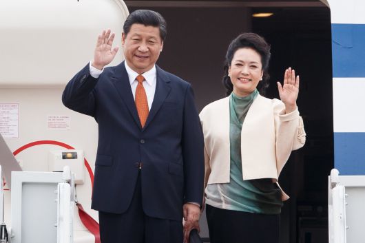 2014년 7월 3일 시진핑(習近平) 중국 국가주석이 방한 당시 부인 펑리위안(彭麗媛) 여사와 함께 경기도 성남 서울공항에 도착해 손을 흔들고 있다. 뉴스1 |