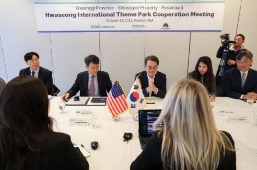 김동연 경기도지사는 현지시각 28일 미국 보스턴에서 글로벌 콘텐츠 기업 파라마운트와 신세계프라퍼티 관계자들과 화성 국제테마파크 조성사업의 진행 현황을 공유하고 향후 협력 방안을 논의했다.