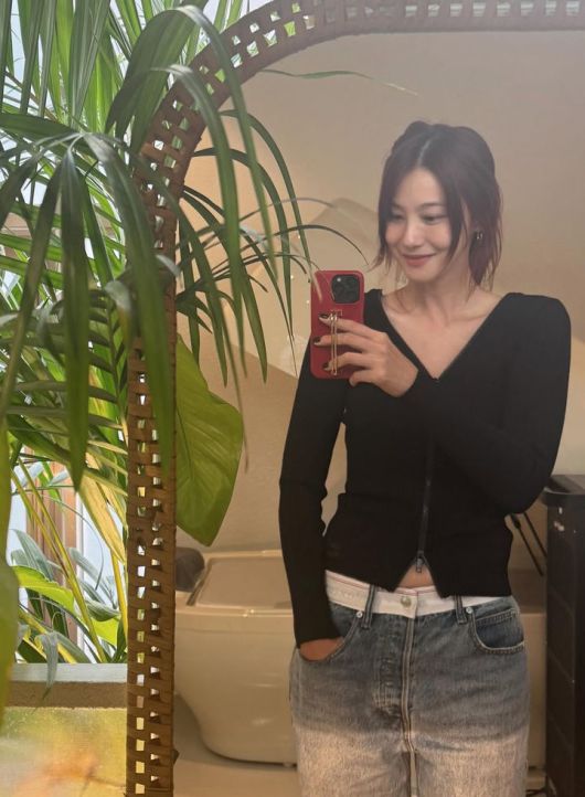 사진 속 유인영은 거울 셀카를 찍고 있다.