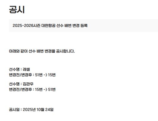 앞서 지난 23일 인천 계양체육관에서 열린 대한항공과 한국전력의 경기 당시 대한항공 러셀이 유니폼을 잘못 가져와 이와 같은 논란이 발생했다.
