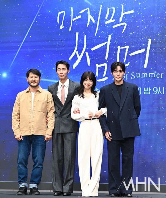 (MHN 이현지 기자) 민연홍 감독과 배우 이재욱, 최성은, 김건우가 29일 오후 서울 구로구에서 진행된 드라마 '마지막 썸머' 제작발표회에 참석해 포토타임을 갖고 있다.