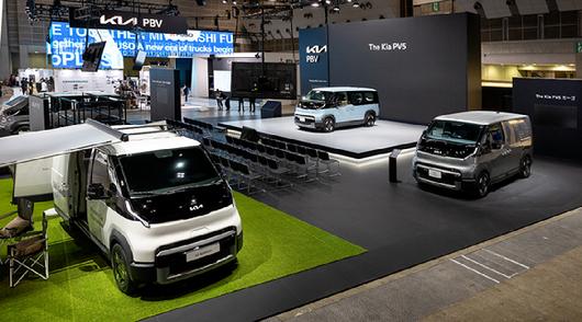 이번 재팬 모빌리티쇼에서 기아는 '공간을 자유롭게 비즈니스를 자유자재로'를 주제로 PV5의 다양한 활용성을 부각하는 방향으로 전시장을 꾸몄다.