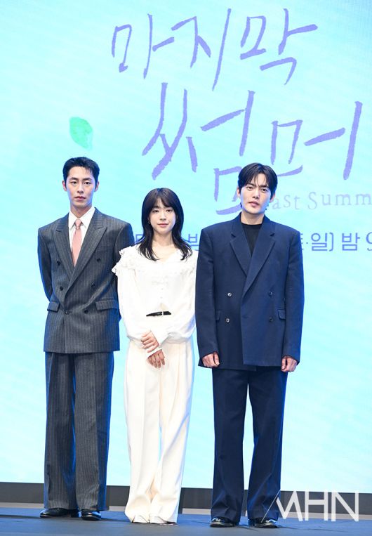 (MHN 이현지 기자) 배우 최성은, 이재욱, 김건우가 29일 오후 서울 구로구에서 진행된 드라마 '마지막 썸머' 제작발표회에 참석해 포토타임을 갖고 있다.