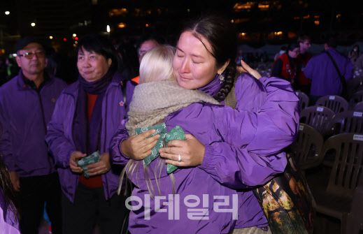 10.29 이태원참사 외국인 희생자들이 25일 오후 서울 중구 서울광장에서 열린 10.29 이태원참사 3주기 시민추모대회에 참석해 서로를 위로하며 고통과 슬픔을 나누고 있다.(사진=공동취재단) |