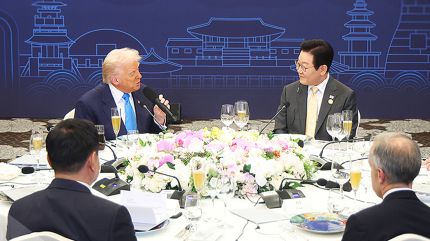 트럼프 미국 대통령이 방한 첫날부터 숨 가쁜 일정을 소화하는 가운데, 한미 양국 정상이 만찬을 함께 하고 있습니다.