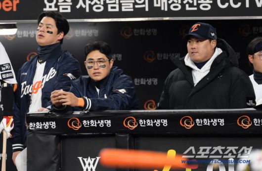29일 대전 한화생명볼파크에서 열린 한국시리즈 3차전 한화 이글스와 LG 트윈스의 경기. 한화 채은성, 류현진이 경기를 지켜보고 있다. 대전=박재만 기자 pjm@sportschosun.com/2025.10.29/
