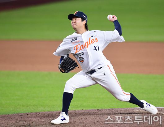 [대전=스포츠투데이 권광일 기자] 2025 신한은행 SOL Bank KBO리그 한국시리즈 3차전 LG트윈스와 한화 이글스의 경기가 29일 대전한화생명 볼파크에서 열렸다. 한화 김범수가 8회초 구원 등판해 역투하고 있다. 2025.10.29. [스포츠투데이 권광일 기자 sports@stoo.com]