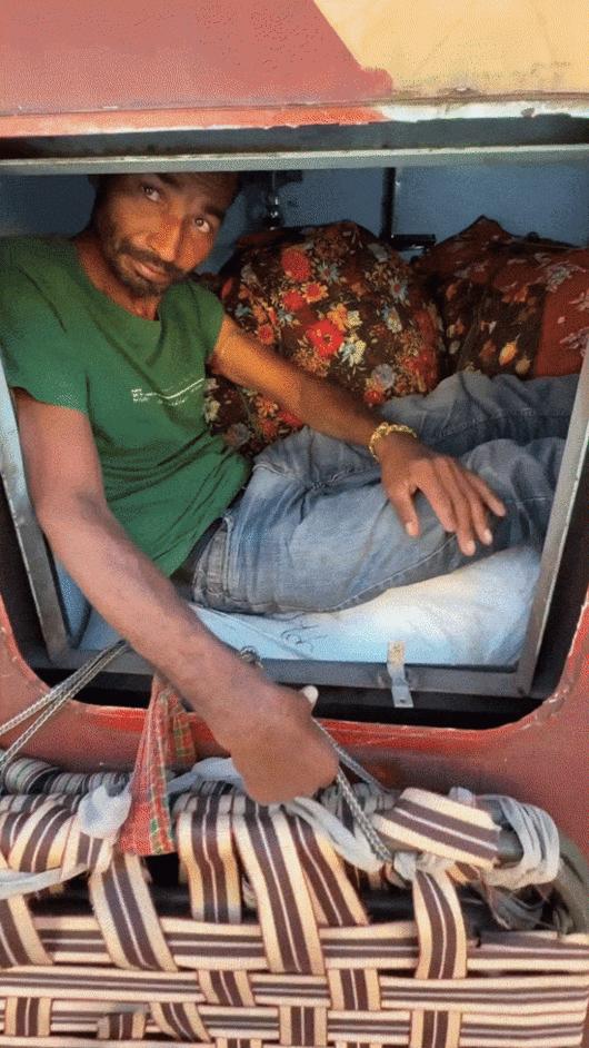 [서울=뉴시스] 강세훈 기자 = 인도에서 기차 화장실을 침실처럼 개조해 사용한 남성의 영상이 공개돼 화제다.
